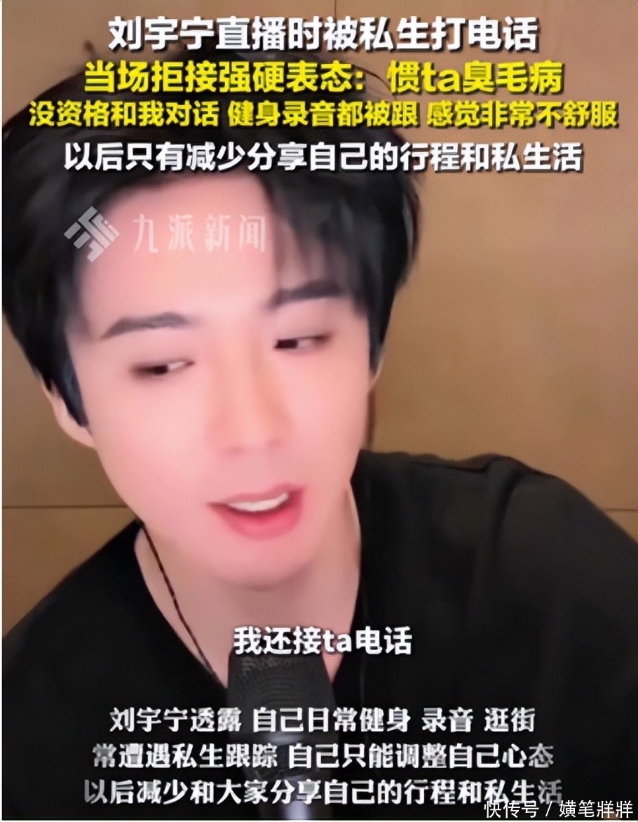 最近大火的“顶刘”刘宇宁,他也曾在直播中怒斥私生,当场挂断私生打来的电话,怒斥这种骚扰行为。