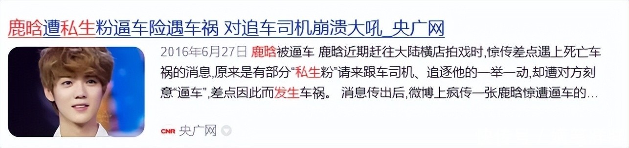 还有鹿晗,有一次工作外出,被私生跟踪,他下车怒斥驱赶,和对方发生言语冲突,幸好工作人员出面拦下他,才没有进一步事态恶化。
